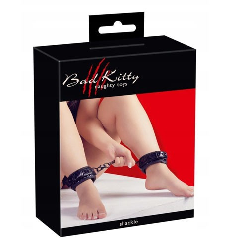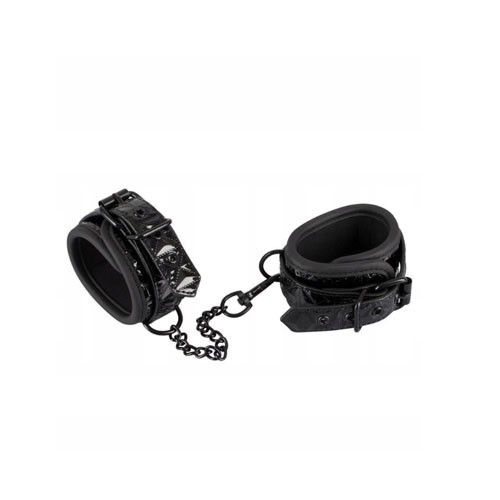 אזיקי קרסול שחורים עם דוגמא מבריקה המגבילים את התנועה בצורה מעוררת.