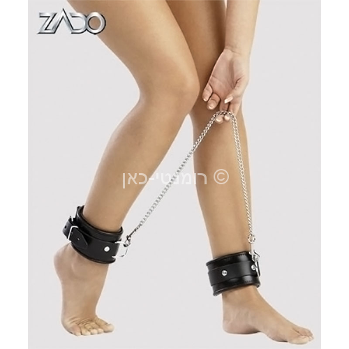 אזיקים מעור נאפה אמיתי המחוברים בינהם באמצעות שרשרת כסופה